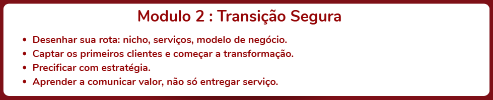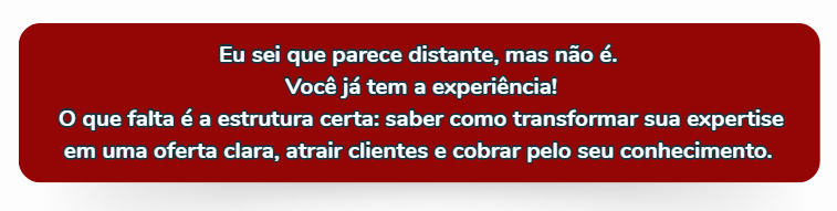 Não. É justamente no início da mentoria que vamos definir juntos seu nicho, serviço e proposta, de forma estratégica para atrair clientes certos.