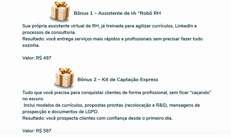 "Transforme sua experiência em RH em uma consultoria lucrativa em 90 dias mesmo que você nunca tenha vendido nada na vida."